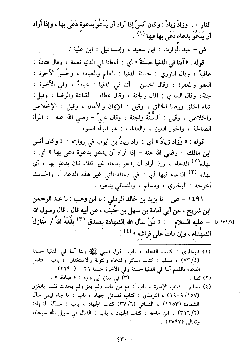 (1) البخاري: كتاب الدعاء، باب: قول النبي صَلَّى اللَّهُ عَلَيْهِ وَسَلَّمَ ربنا آتنا في الدنيا حسنة (4/ 73) ، مسلم: كتاب الذكر والدعاء والتوبة والاستغفار، باب: فضل الدعاء باللهم آتنا في الدنيا حسنة وفي الآخرة حسنة 26- (2690) .