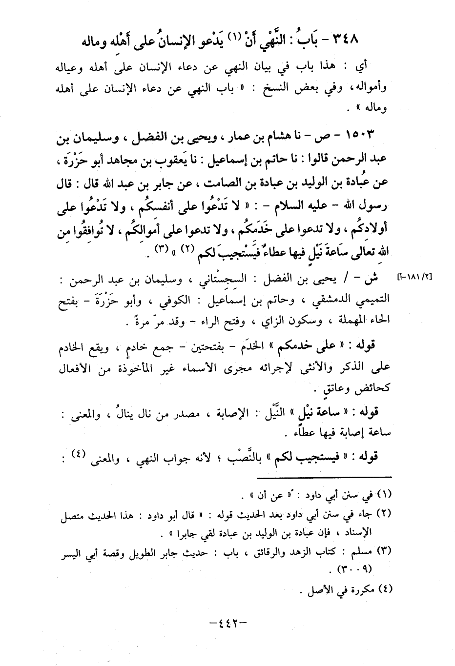 348- بابُ: النّهْي أنْ (1) يدْعو الإنسانُ على أهْله وماله