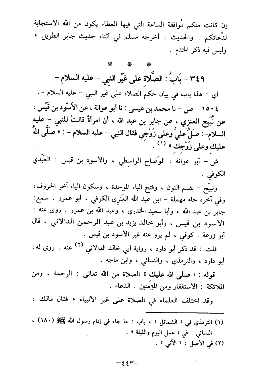 349- بابُ: الصّلاةِ على غيْر النبِي- عليها السلام-