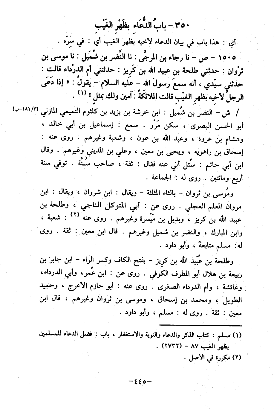 350- بابُ الدعاء بظهْرِ الغيبِ