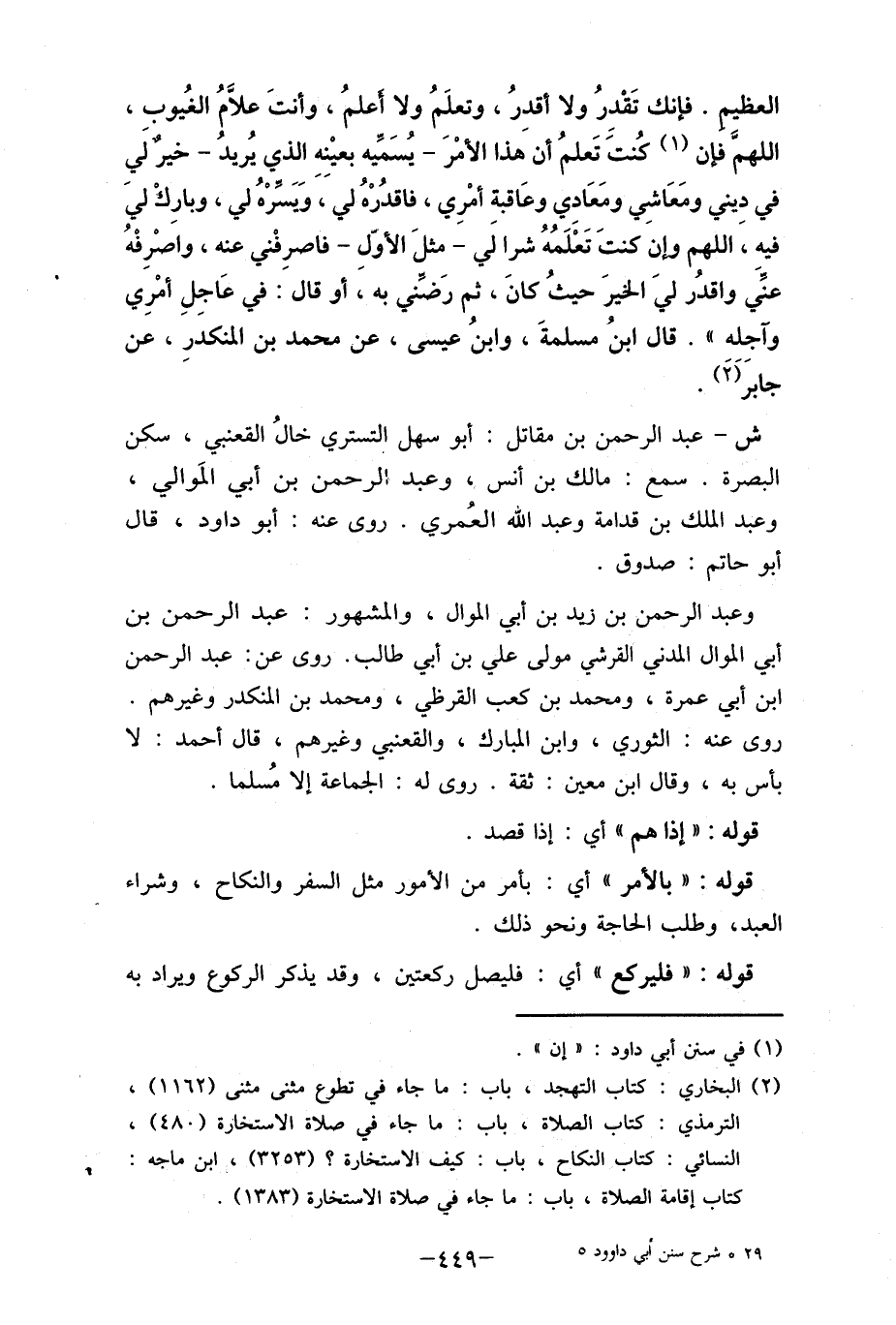 (2) البخاري: كتاب التهجد، باب: ما جاء في تطوع مثنى مثنى (1162) ، الترمذي: كتاب الصلاة، باب: ما جاء في صلاة الاستخارة (480) ، النسائي: كتاب النكاح، باب: كيف الاستخارة؟ (3253) ، ابن ماجه: كتاب إقامة الصلاة، باب: ما جاء في صلاة الاستخارة (1383) .