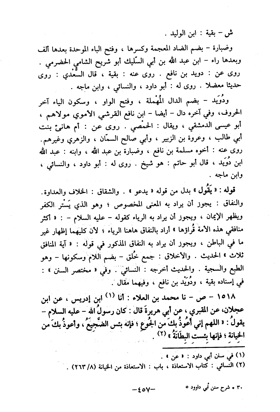 1518- ص- نا محمد بن العلاء: أنا (1) ابن إدريس، عن ابن عجلان، عن المقبري، عن أبي هريرة قال: ْ كان رسولُ الله- عليه السلام- يقولُ: (اللهم إني أعُوذُ بك من الجُوع؟ فإنه بئس الضجِيعُ، وأعوذُ بك من الخِيانةِ , فإنها بِئستِ البِطانة " (2) .