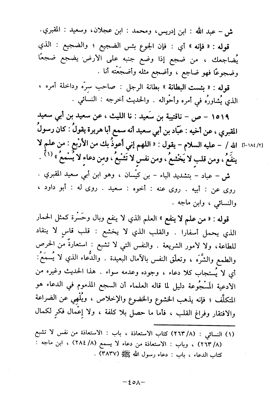 (1) النسائي: (263/8) كتاب الاستعاذة، باب: الاستعاذة من نفس لا تشبع (8 /263) ، وباب: الاستعاذة من دعاء لا يسمع (8 / 284) ، ابن ماجه: كتاب الدعاء، باب: دعاء رسول الله صَلَّى اللَّهُ عَلَيْهِ وَسَلَّمَ (3837) .