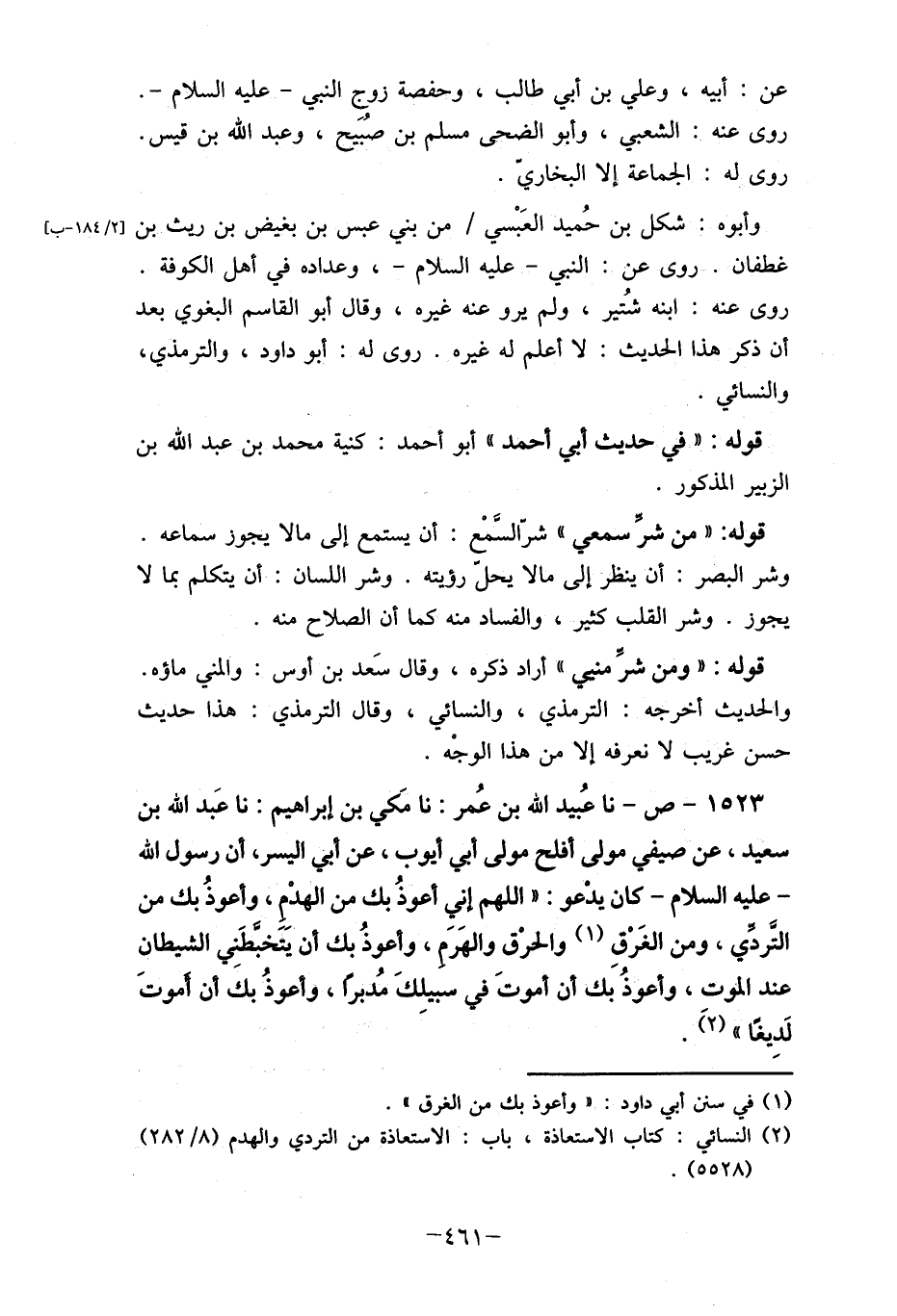 (2) النسائي ": كتاب الاستعاذة، باب: الاستعاذة من التردي والهدم (8/ 282)