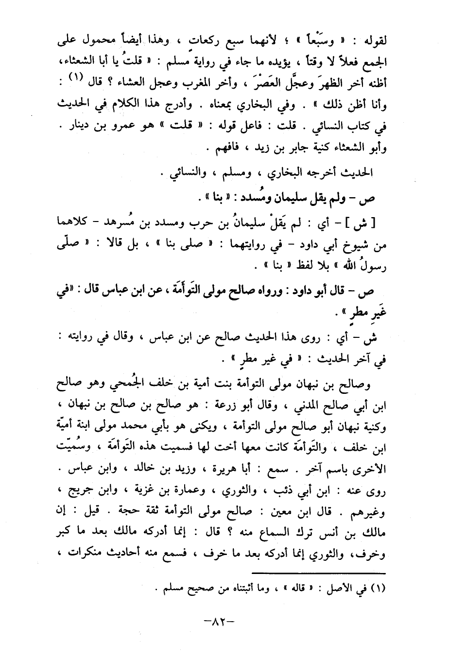 ص- قال أبو داود: ورواه صالح مولى التَوأمَة، عن ابن عباس قال: "في غَيرِ مطرٍ "