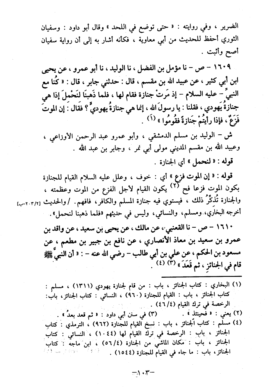 (4) مسلم: كتاب الجنائز، باب: نسخ القيام للجنازة (962) ، الترمذي: كتاب