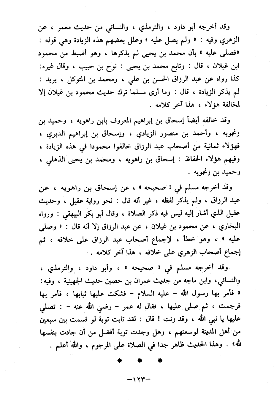 وقد خالفه أيضا إسحاق بن إبراهيم المعروف بابن راهويه، وحميد بن زنجويه، وأحمد بن منصور الزيادي، وإسحاق بن إبراهيم الدوري، فهؤلاء ثمانية من أصحاب عبد الرزاق خالفوا محمودا في هذه الزيادة، وفيهم هؤلاء الحفاظ: إسحاق بن راهويه، ومحمد بن يحيى الذهلي، وحميد بن زنجويه.