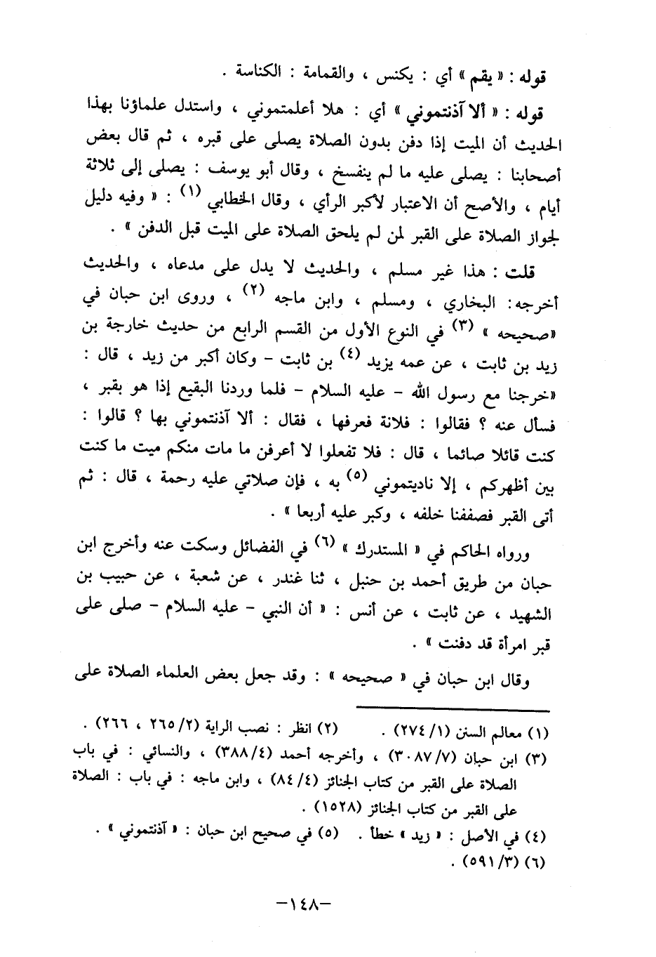 (3) ابن حبان (7/ 87 0 3) ، وأخرجه أحمد (4/ 388) ، والنسائي: في باب الصلاة على القبر من كتاب الجنائز (4/ 84) ، وابن ماجه: في باب: الصلاة على القبر من كتاب الجنائز له 152) .