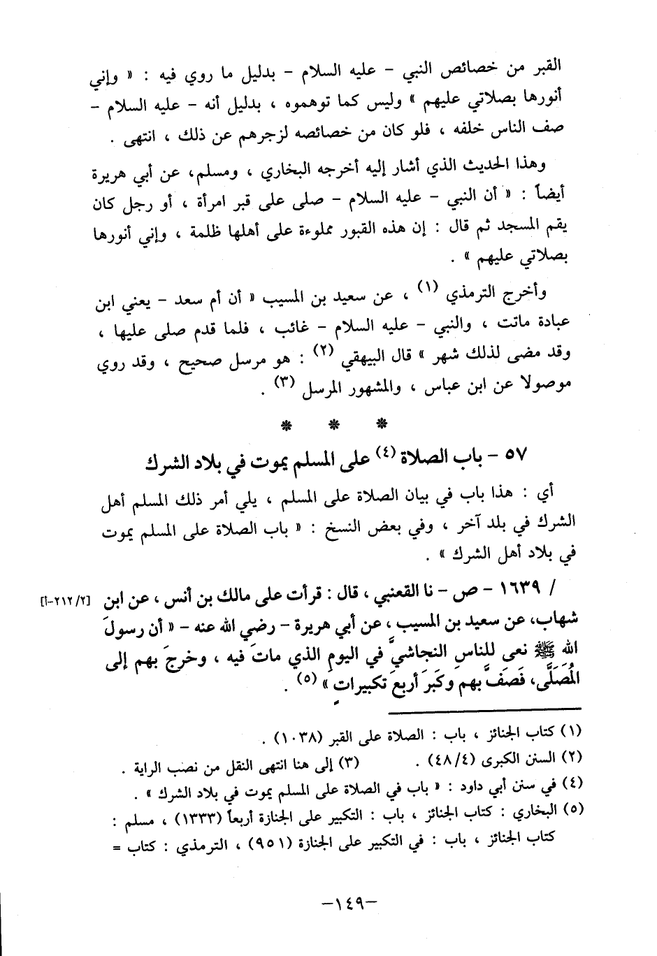 / 639 1- ص- نا القعنبي، قال: قرأت على مالك بن أنس، عن ابن شهاب، عن سعيد بن المسيب، عن أبي هريرة- رضِي الله عنه- "أن رسولَ الله صلى الله عليه وسلم نعىِ للناسِ النجاشي في اليوم الذي مات فيه، وخرجَ بهم إلى المُصًلَّى، فَصلى بهم وكَبرَ أربع تكبيراتٍ " (5) .