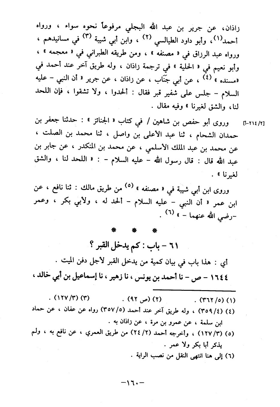 لنا، والشق لغيرنا" وفيه مقال. 214/21 ط وروى أبو حفص بن شاهين في كتاب "الجنائز": حدثنا جعفر بن حمدان الشحام، أنا عبد الأعلى بن واصل، أنا محمد بن الصلت،