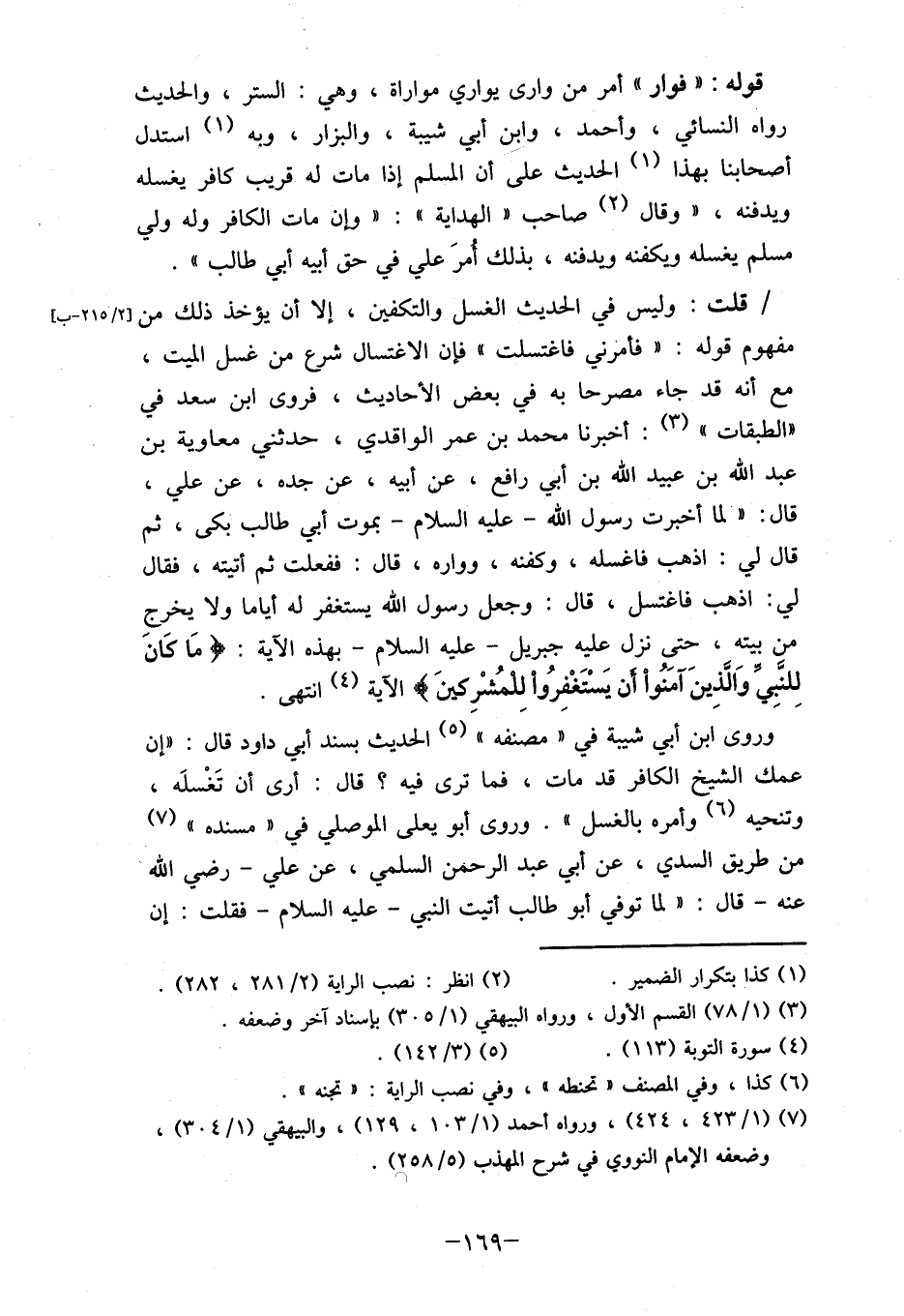 (7) (1/ 423، 424) ، ورواه أحمد (1/ 03 1، 129) ، والبيهقي (1/ 4 30) ، وضعفه الإمام النووي في شرح المهذب (5/ 258) .
