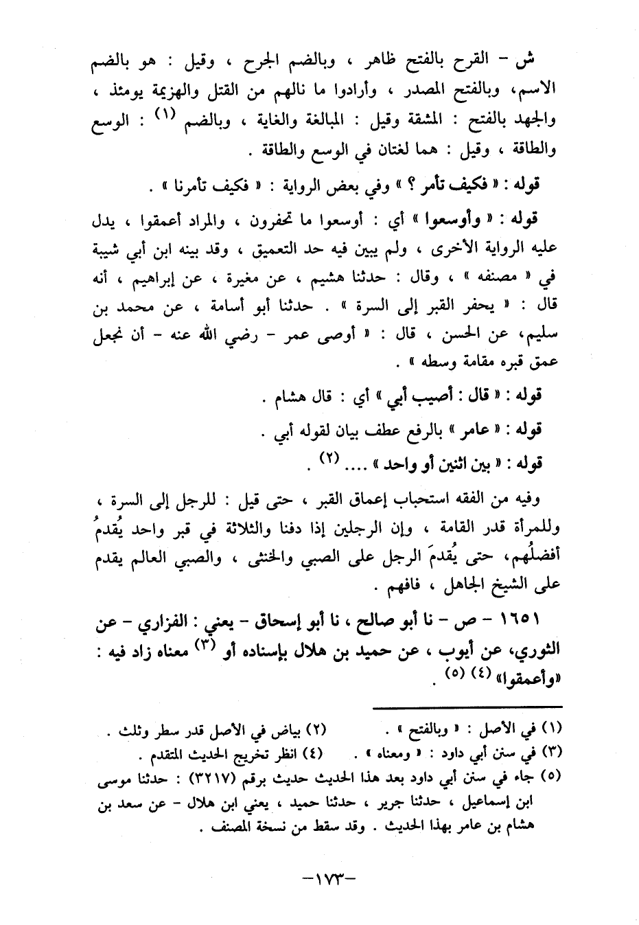 1651- ص- نا أبو صالح، نا أبو إسحاق- يعني: الفزاري- عن الثوري، عن أيوب، عن حميد بن هلال بإسناده أو (3) معناه زاد فيه: " وأعمقوا " (4) (5) .