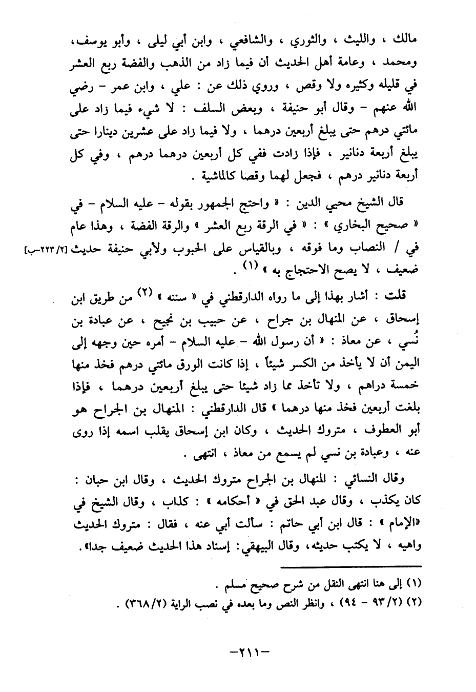 بلغت أربعين فخذ منها درهما" قال الدارقطني: المنهال بن الجراح هو