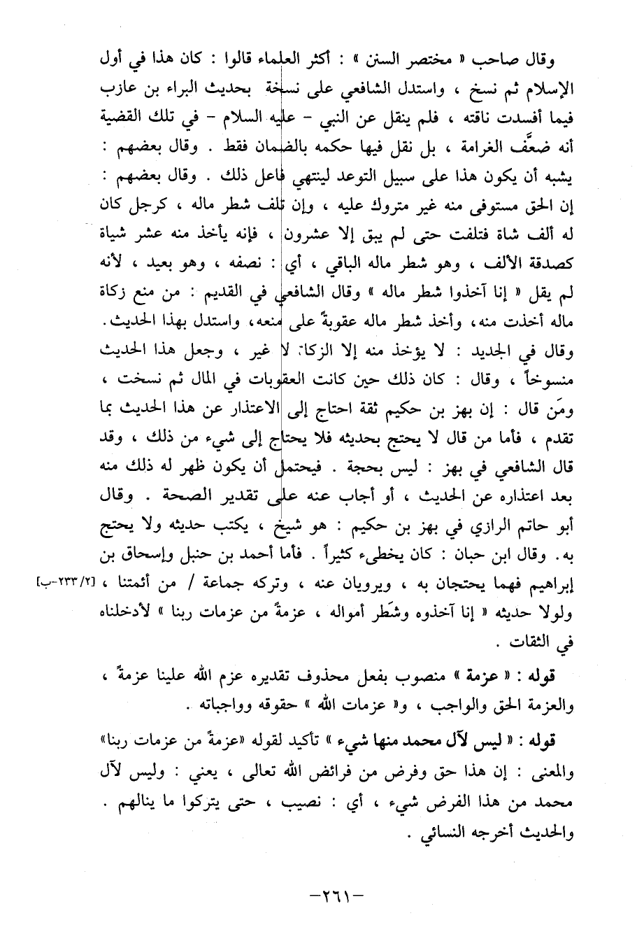 وقال في الجديد: لا يؤخذ منه إلا الزكاة لا غير، وجعل هذا الحديث منسوخاً وقال: كان ذلك حين كانت العقوبات في المال ثم نسخت،