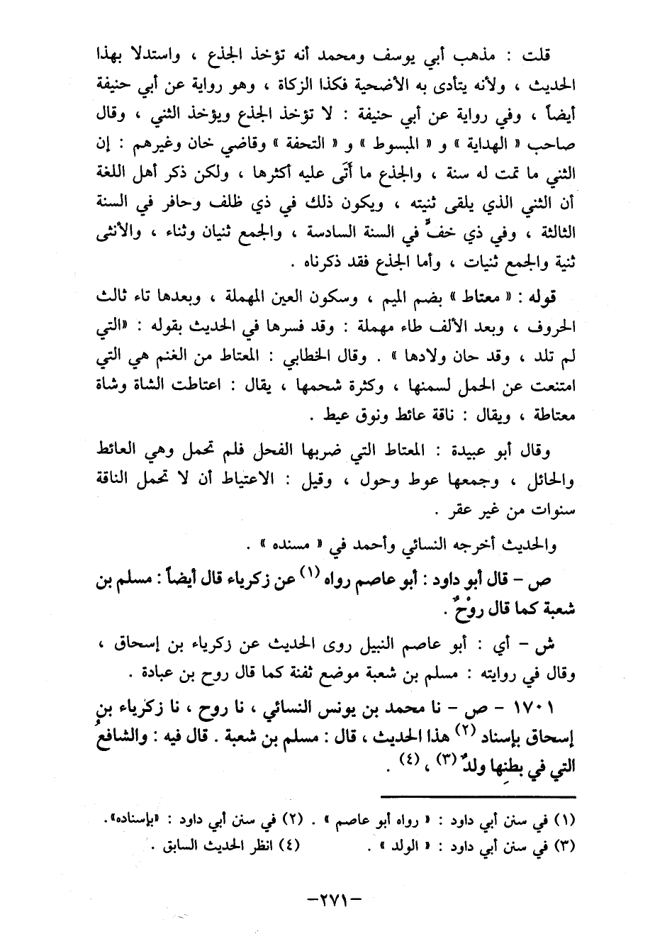 1701- ص- نا محمد بن يونس النسائي، نا روح، نا زكرياء بن إسحاق بإسناد (2) هذا الحديث، قال: مسلم بن شعبة. قال فيه: والشافعُ التي في بطنِها ولد (3) ، (4) .