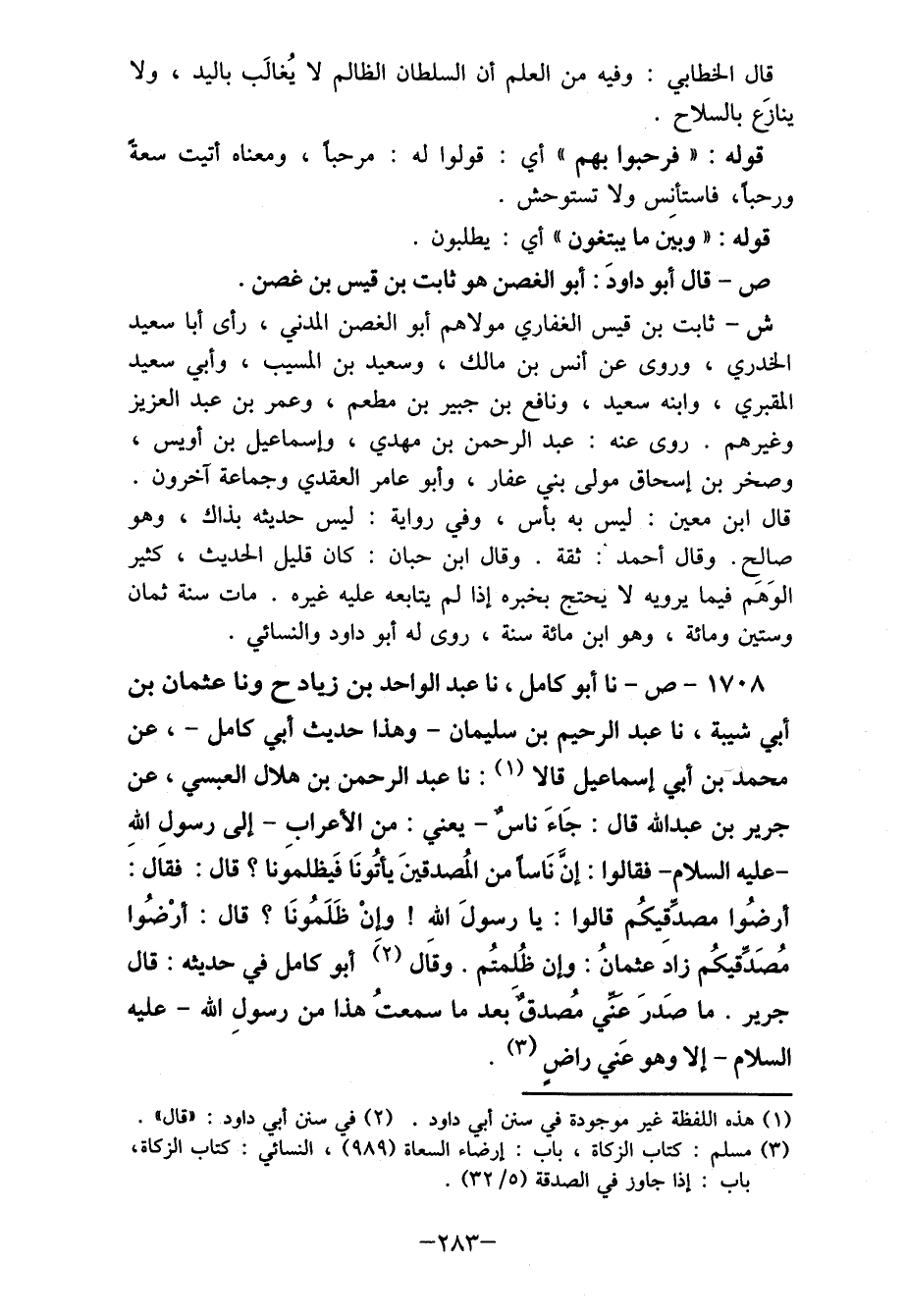 (1) هذه اللفظة غير موجودة في سنن أبي داود. (2) في سنن أبي داود: "قال". (3) مسلم: كتاب الزكاة، باب: إرضاء السعاة (989) ، النسائي: كتاب الزكاة، باب: إذا جاوز في الصدقة (5/ 32) .