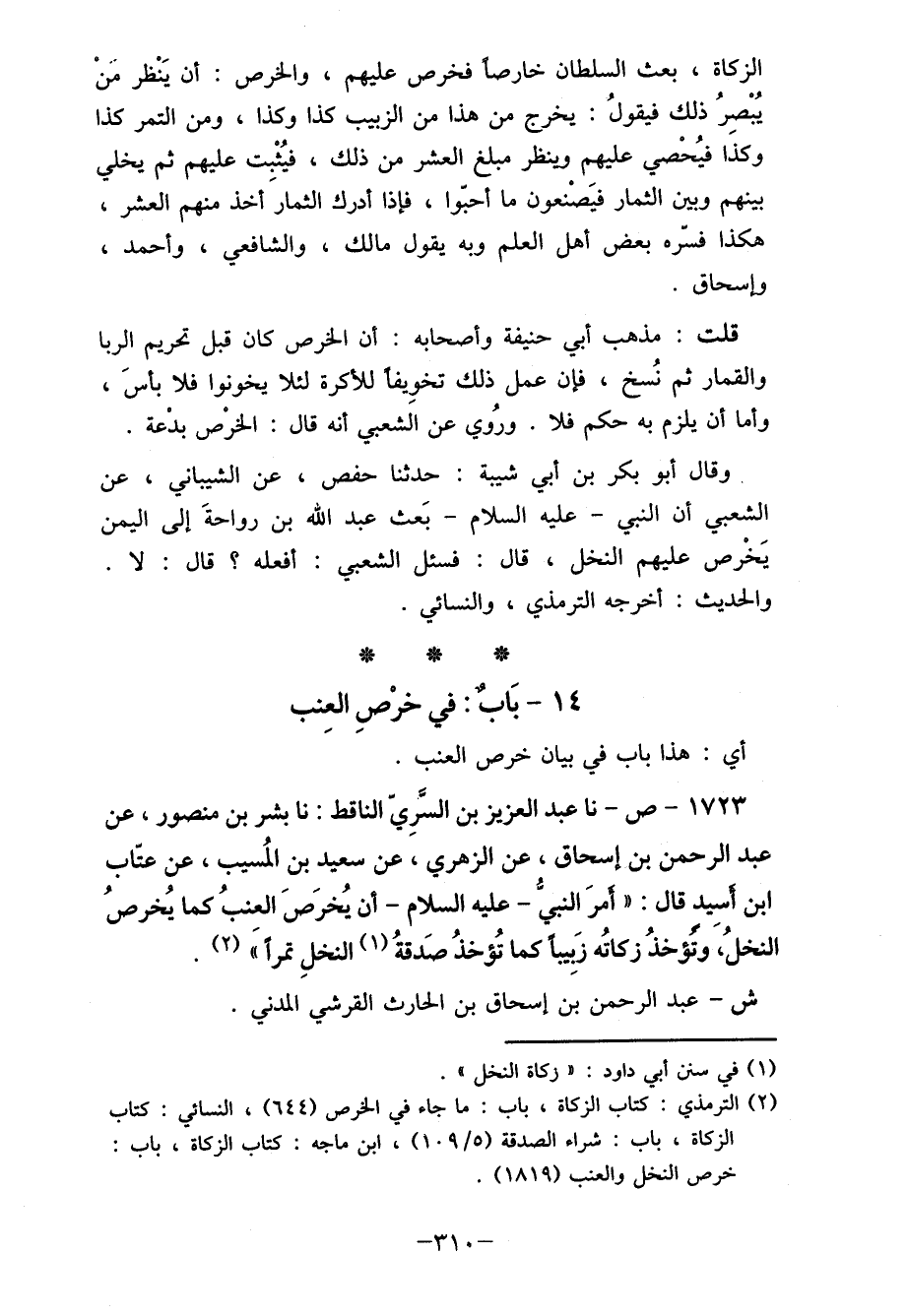 (2) الترمذي: كتاب الزكاة، باب: ما جاء في الخرص (644) ، النسائي: كتاب الزكاة، باب: شراء الصدقة