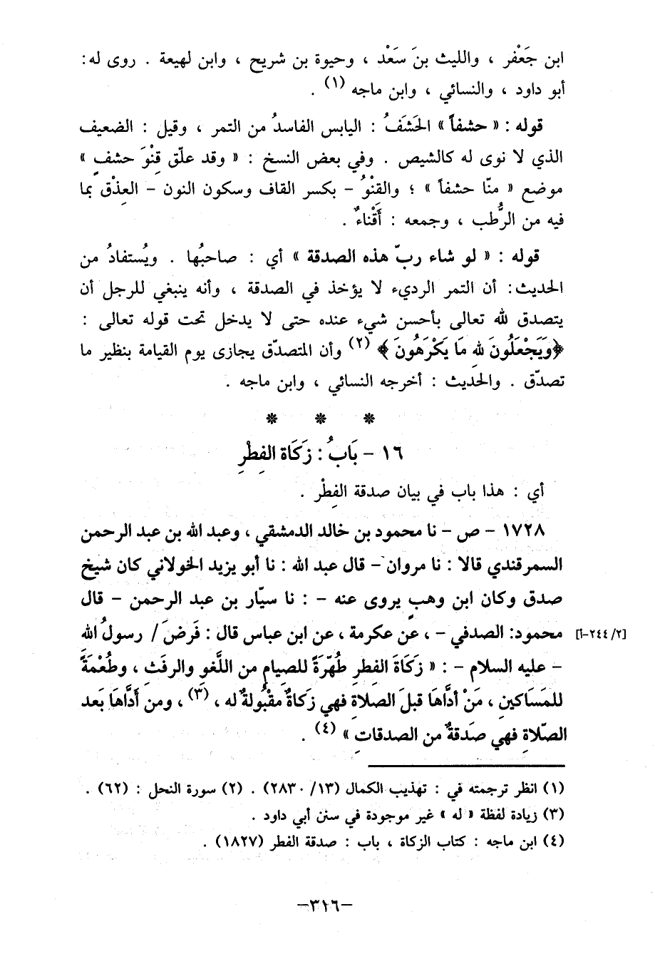 (4) ابن ماجه: كتاب الزكاة، باب: صدقة الفطر (1827) .
