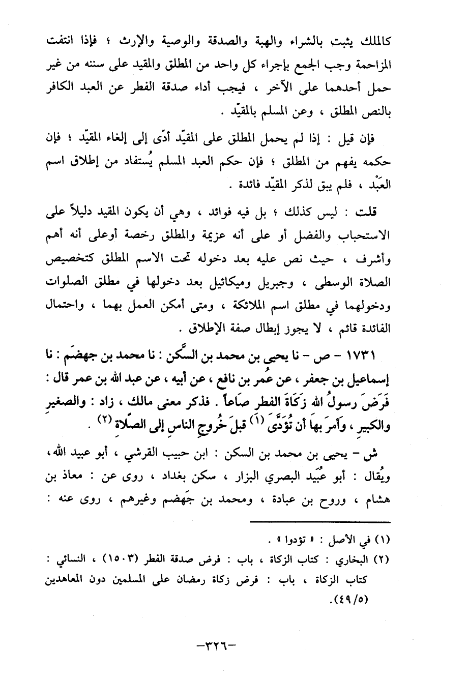 (2) البخاري: كتاب الزكاة، باب: فرض صدقة الفطر (1503) ، النسائي: كتاب الزكاة، باب: فرض زكاة رمضان على المسلمين دون المعاهدين