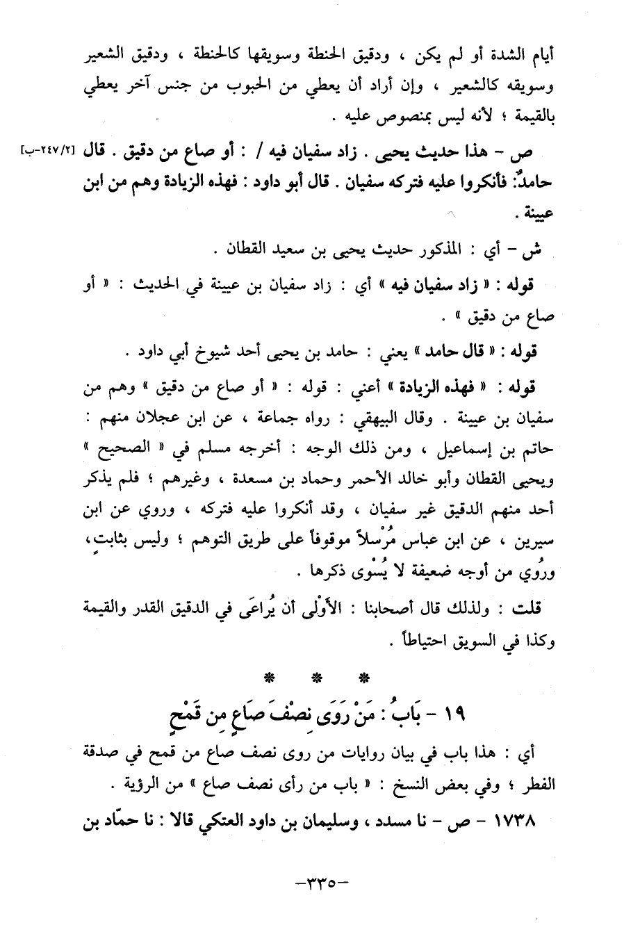 ص- هذا حديث يحيى. زاد سفيان فيه/: أو صاع من دقيق. قال حامد فأنكروا عليه فتركه سفيان. قال أبو داود: فهذه الزيادة وهم من ابن عيينة. "