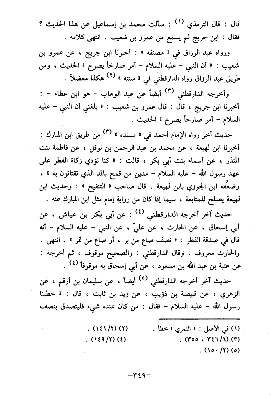 وأخرجه الدارقطني (3) أيضا عن عبد الوهاب- هو ابن عطاء-: أخبرنا ابن جريج، قال: قال عمرو بن شعيب: "بلغني أن النبي- عليه السلام- أمر صارخا يصرخ " الحديث.