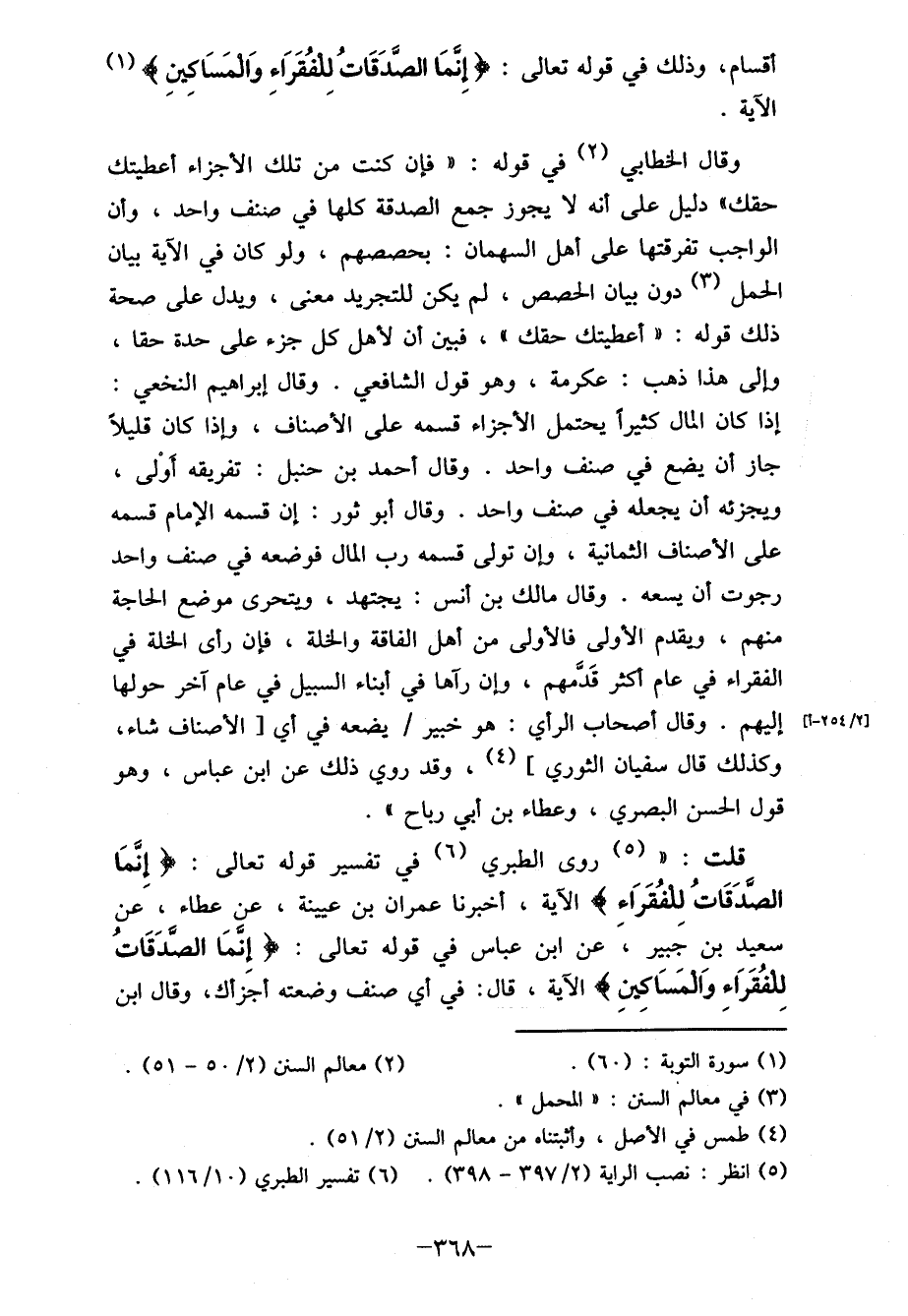 قلت: " (5) روى الطبري (6) في تفسير قوله تعالى: {إنما الصَّدَقَاتُ لِلفُقَرَاء} الآية، أخبرنا عمران بن عيينة، عن عطاء، عن سعيد بن جبير، عن ابن عباس في قوله تعالى: {إِنَّمَا الصَّدَقَاتُ لِلفُقَرَاء وَالمَسَاكِينِ} الآية، قال: في أي صنف وضعته أجزأه، وقال ابن