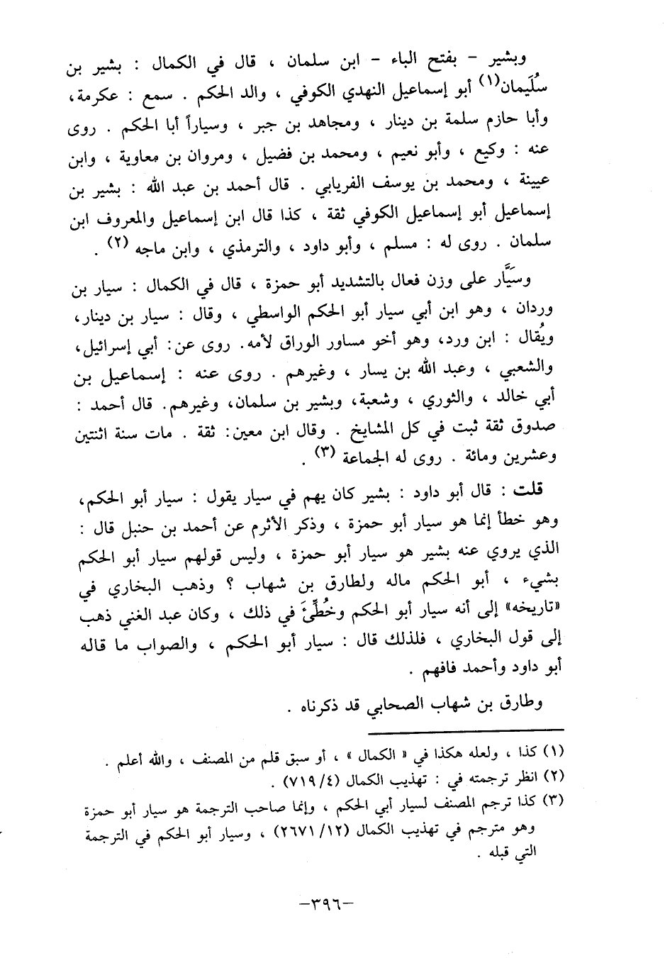 (3) كذا ترجم المصنف لسيار أبي الحكم، وإنما صاحب الترجمة هو سيار أبو حمزة وهو مترجم في تهذيب الكمال (12/ 2671) ، وسيار أبو الحكم في الترجمة التي قبله.