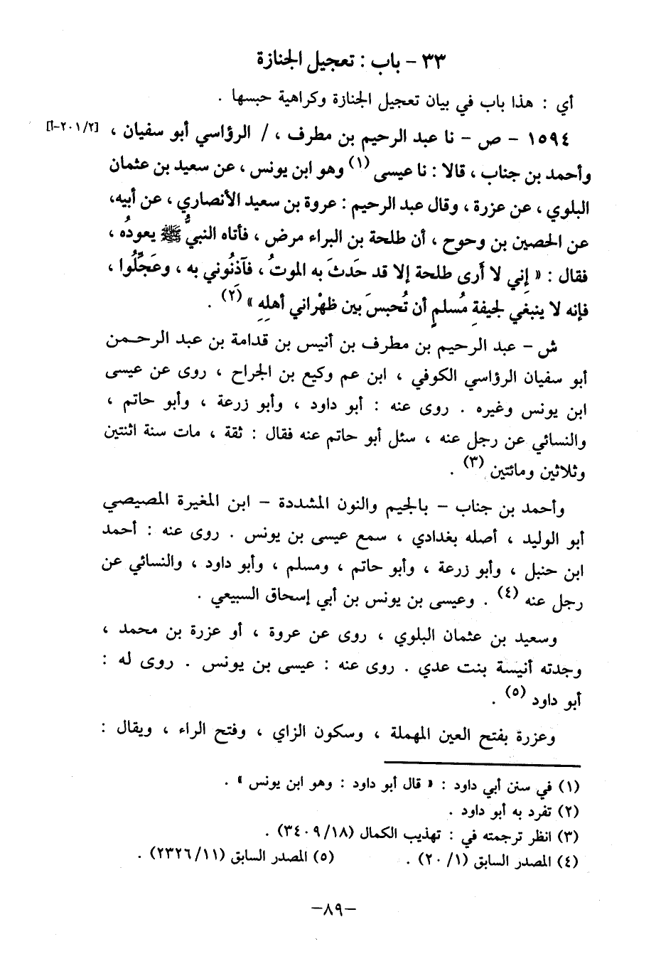 1594- ص- نا عبد الرحيم بن مطرف،/ الرؤاسي أبو سفيان، 201/21- وأحمد بن جناب، قالا: نا عيسى (1) وهو ابن يونس، عن سعيد بن عثمان