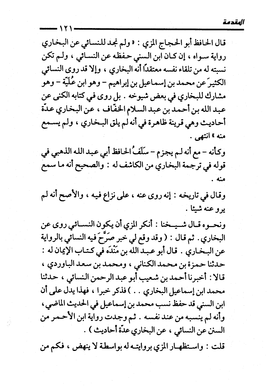 قال الحافظ أبو الحجاج المزي: "ولم نجد للنسائي عن البخاري رواية سواه، إن كان ابن السني حفظه عن النسائي، ولم تكن نسبته له من تلقاء نفسه معتقدًا أنه البخاري، وإلا قد روى النسائي الكثيرَ عن محمَّد بن إسماعيل بن إبراهيم -وهو ابن عُلَيّة- وهو مشارك للبخاري في بعض شيوخه. بل روى في كتابه الكنى عن عبد الله بن أحمد بن عبد السلام الخفّاف، عن البخاري عدّة أحاديث وهي قرينة ظاهرة في أنه لم يلق البخاري، ولم يسمع منه" انتهى.