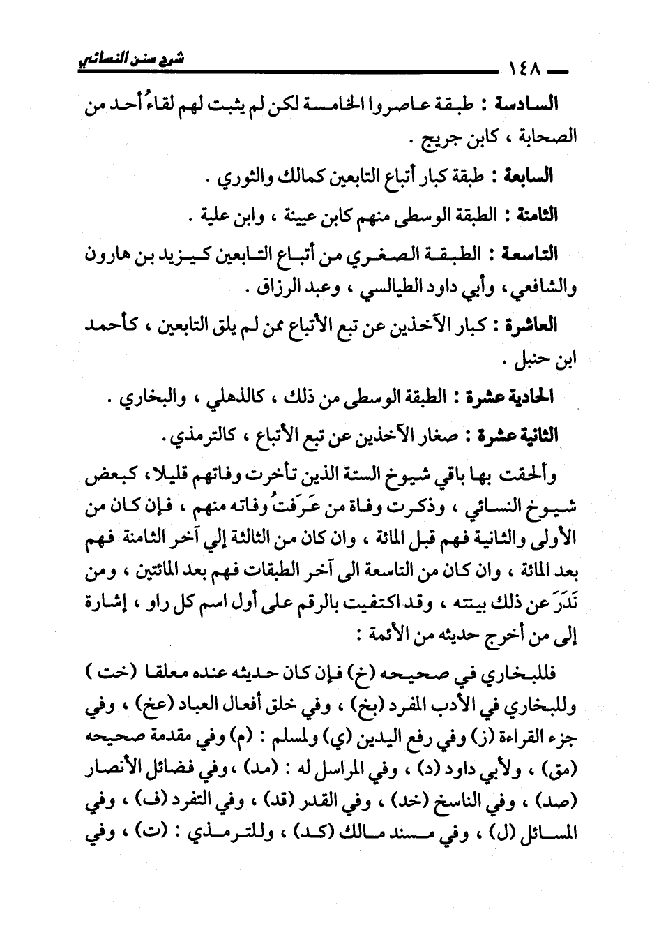 السادسة: طبقة عاصروا الخامسة لكن لم يثبت لهم لقاءُ أحد من الصحابة، كابن جريج.