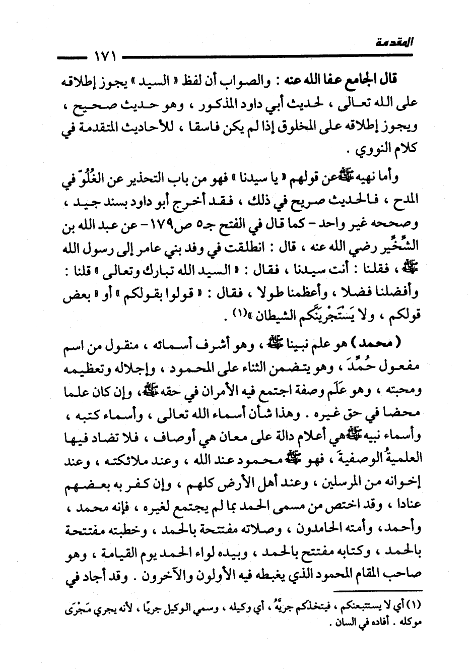 وأما نهيه - صلى الله عليه وسلم - عن قولهم "يا سيدنا" فهو من باب التحذير عن الغُلُوّ في المدح، فالحديث صريح في ذلك، فقد أخرج أبو داود بسند جيد، وصححه غير واحد -كما قال في الفتح جـ 5 ص 179 - عن عبد الله بن الشِّخِّير رضي الله عنه، قال: انطلقت في وفد بني عامر إلى رسول الله - صلى الله عليه وسلم -، فقلنا: أنت سيدنا، فقال: "السيد الله تبارك وتعالى" قلنا: وأفضلنا فضلا، وأعظمنا طولا، فقال: "قولوا بقولكم" أو "بعض قولكم، ولا يَستَجْريَنَّكم الشيطان" (¬1).