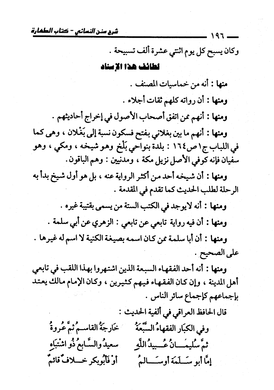 وفي الكبَارالفقهاءُ السَّبْعَةُ ... خَارجَةُ القاسمُ ثمَّ عُروةُ