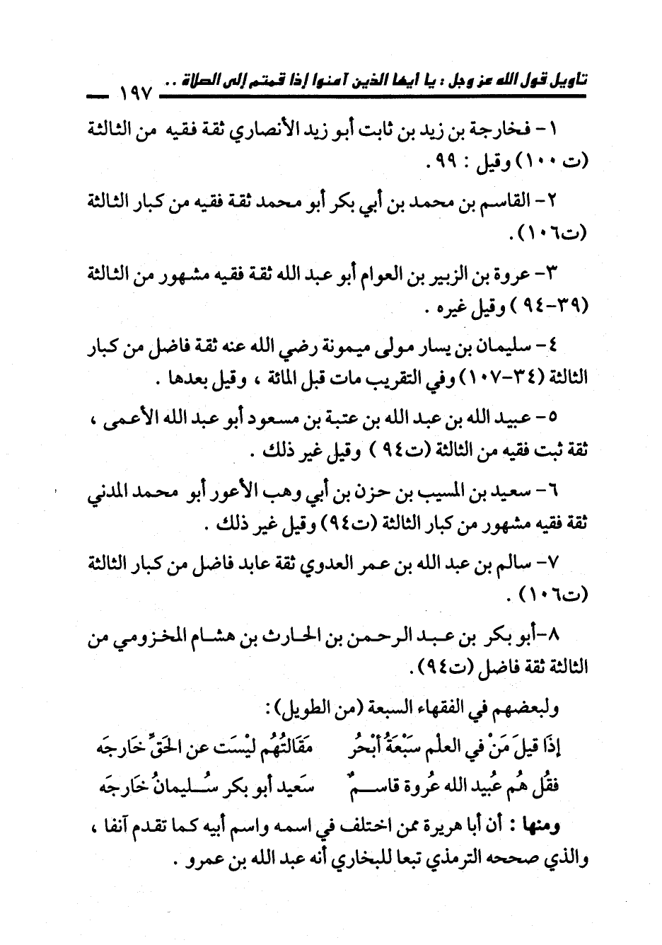 فقُل هُم عُبيد الله عُروة قاسمٌ ... سَعيد أبو بكر سُليمانُ خَارجَه