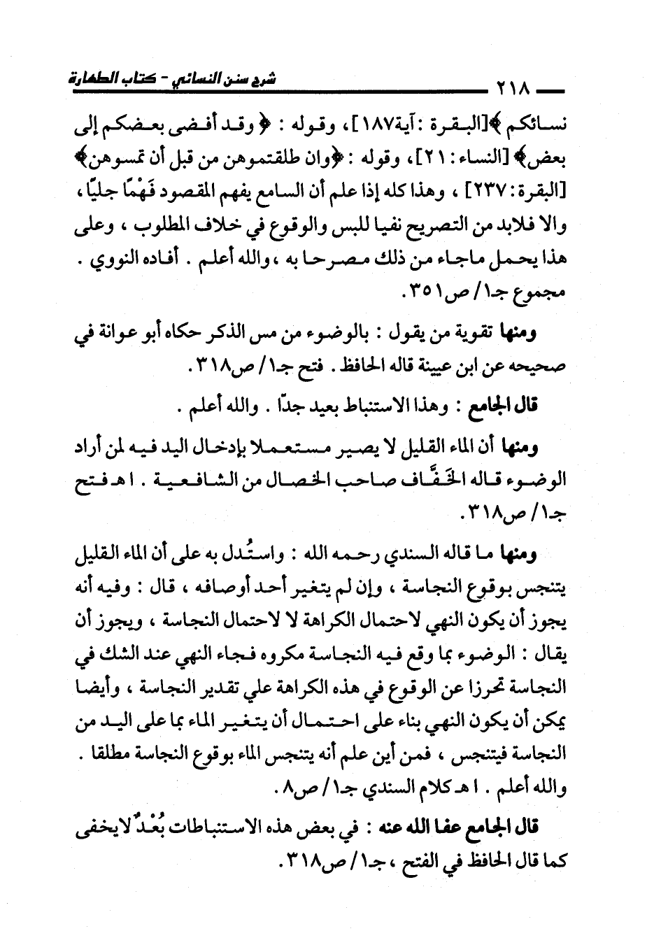 قال الجامع عفا الله عنه: في بعض هذه الاستنباطات بُعْدٌ لا يخفى كما قال الحافظ في الفتح، جـ 1/ ص 318.