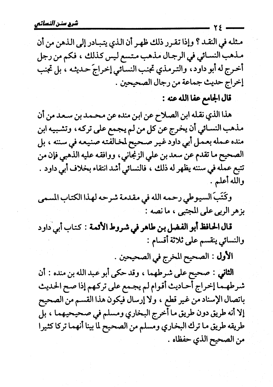 قال الحافظ أبو الفضل بن طاهر في شروط الأئمة: كتاب أبي داود والنسائي ينقسم على ثلاثة أقسام: