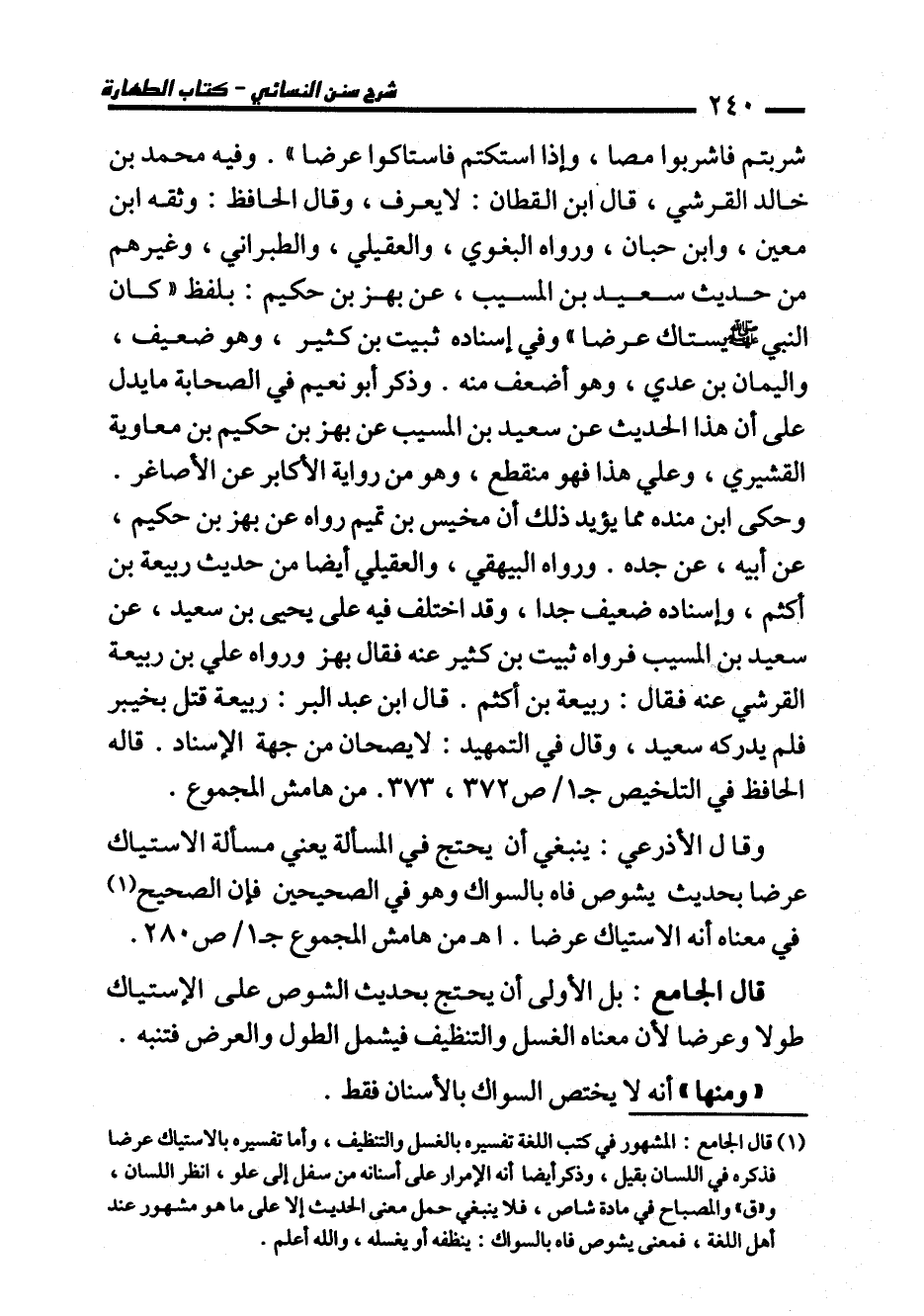 قال الجامع: بل الأولى أن يحتج بحديث الشوص على الإستياك طولا وعرضا لأن معناه الغسل والتنظيف فيشمل الطول والعرض فتنبه.
