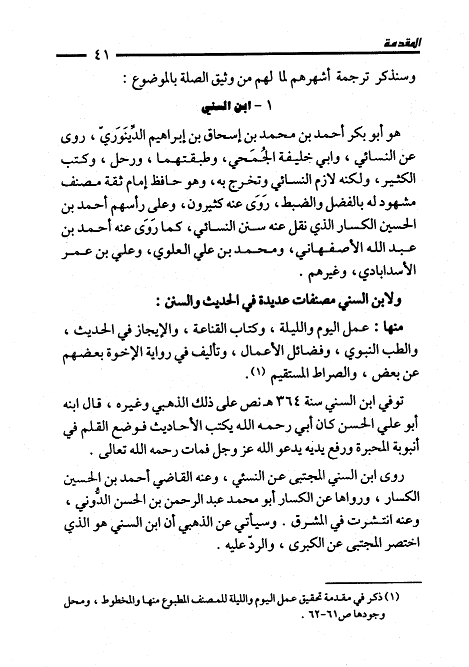 (¬1) ذكر في مقدمة تحقيق عمل اليوم والليلة للمصنف المطبوع منها والمخطوط، ومحل وجودها ص 61 - 62.