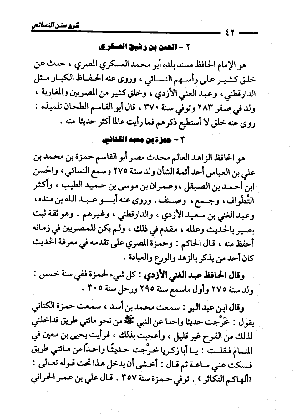 وقال ابن عبد البر: سمعت محمَّد بن أسد، سمعت حمزة الكناني يقول: خَرَّجت حديثا واحدا عن النبي - صلى الله عليه وسلم - من نحو مائتي طريق فداخلني لذلك من الفرح غير قليل، وأعجبت بذلك، فرأيت يحيى بن معين في المنام فقلت: يا أبا زكريا خرَّجت حديثًا واحدًا من مائتي طريق فسكت عني ساعة ثم قال: أخشى أن يدخل هذا تحت قوله تعالى: {أَلْهَاكُمُ التَّكَاثُرُ}. توفي حمزة سنة 357. قال علي بن عمر الحراني