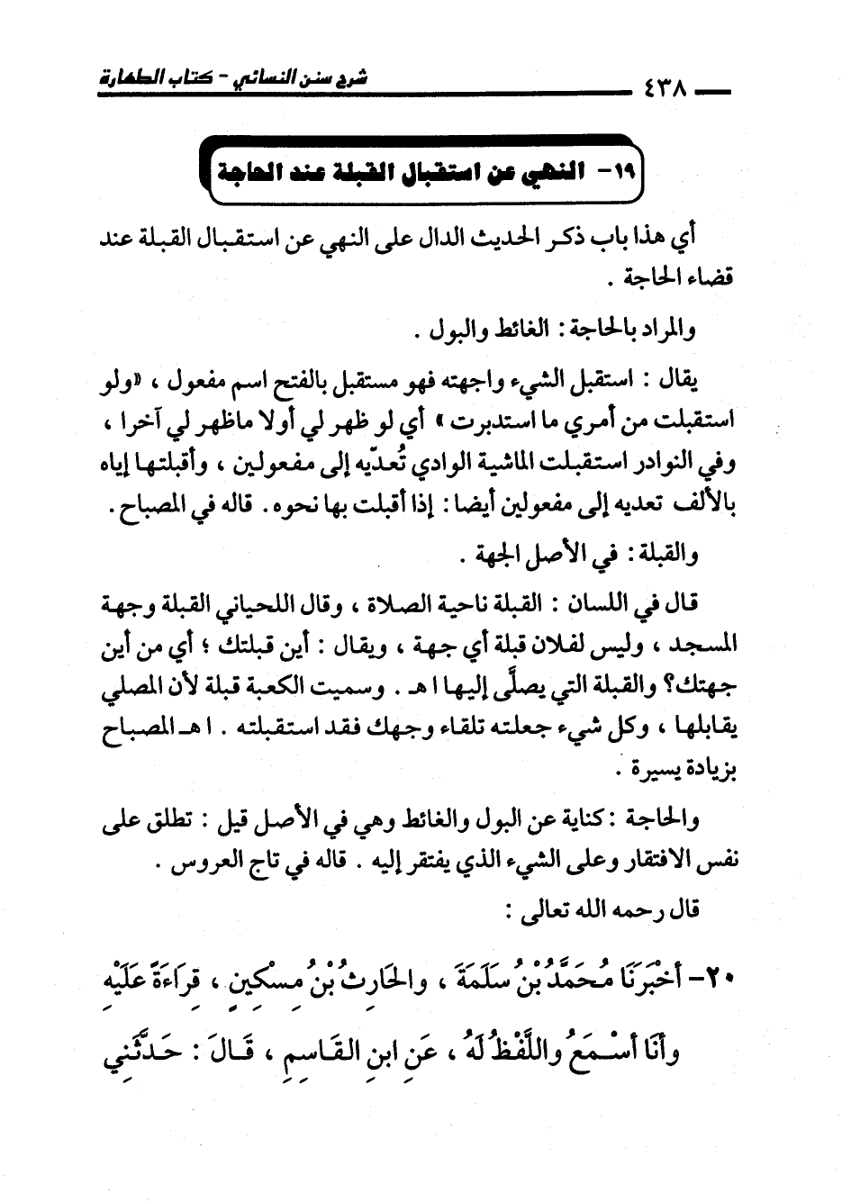 19 - النهي عن استقبال القبلة عنه الحاجة