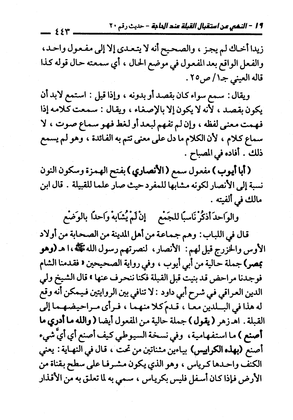 (أبا أيوب) مفعول سمع (الأنصاري) بفتح الهمزة وسكون النون نسبة إلى الأنصار لكونه مشابها للمفرد حيث صار علمًا للقبيلة. قال ابن مالك في ألفيته.