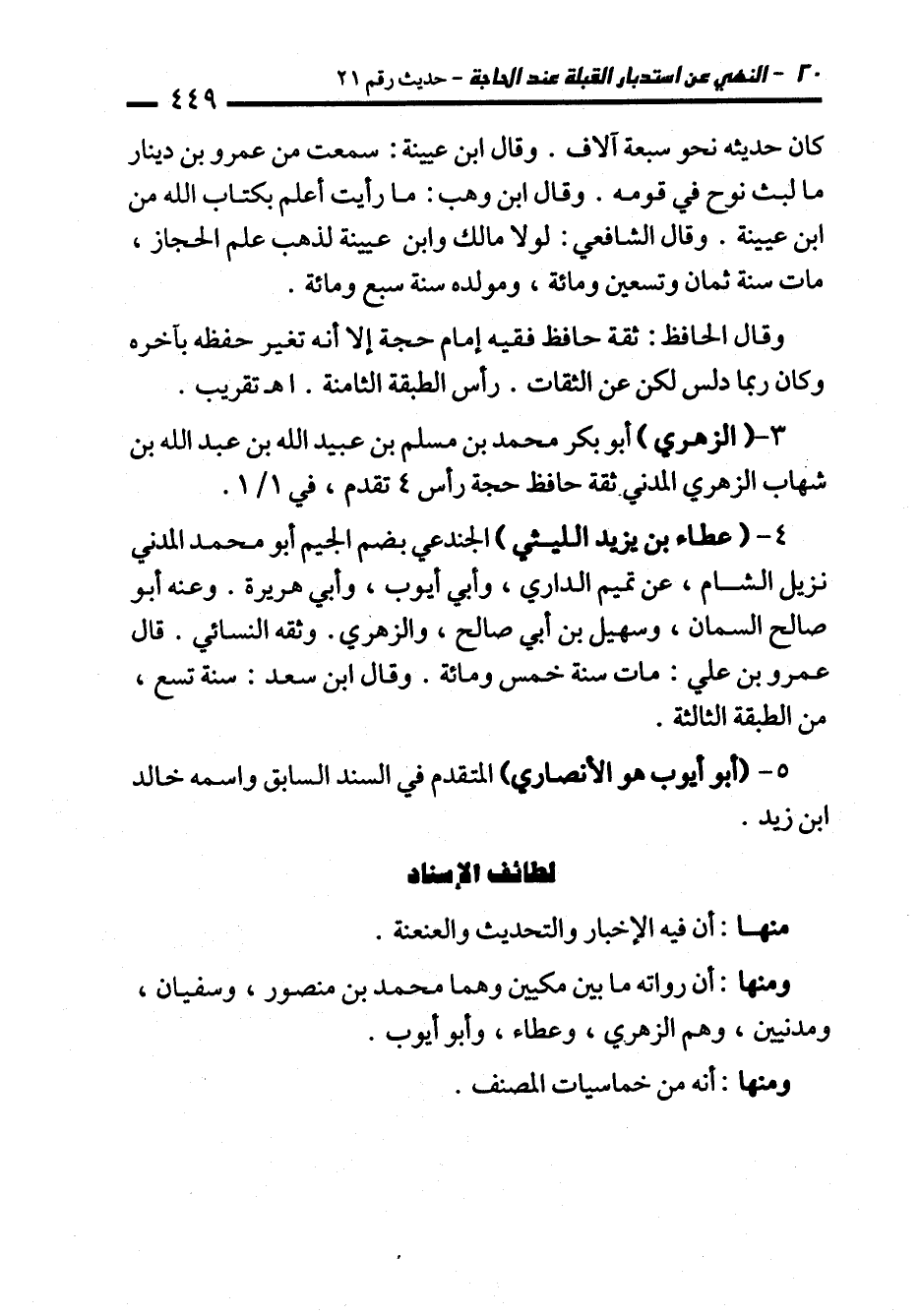 ومنها: أن رواته ما بين مكيين وهما محمَّد بن منصور، وسفيان، ومدنيين، وهم الزهري، وعطاء، وأبو أيوب.