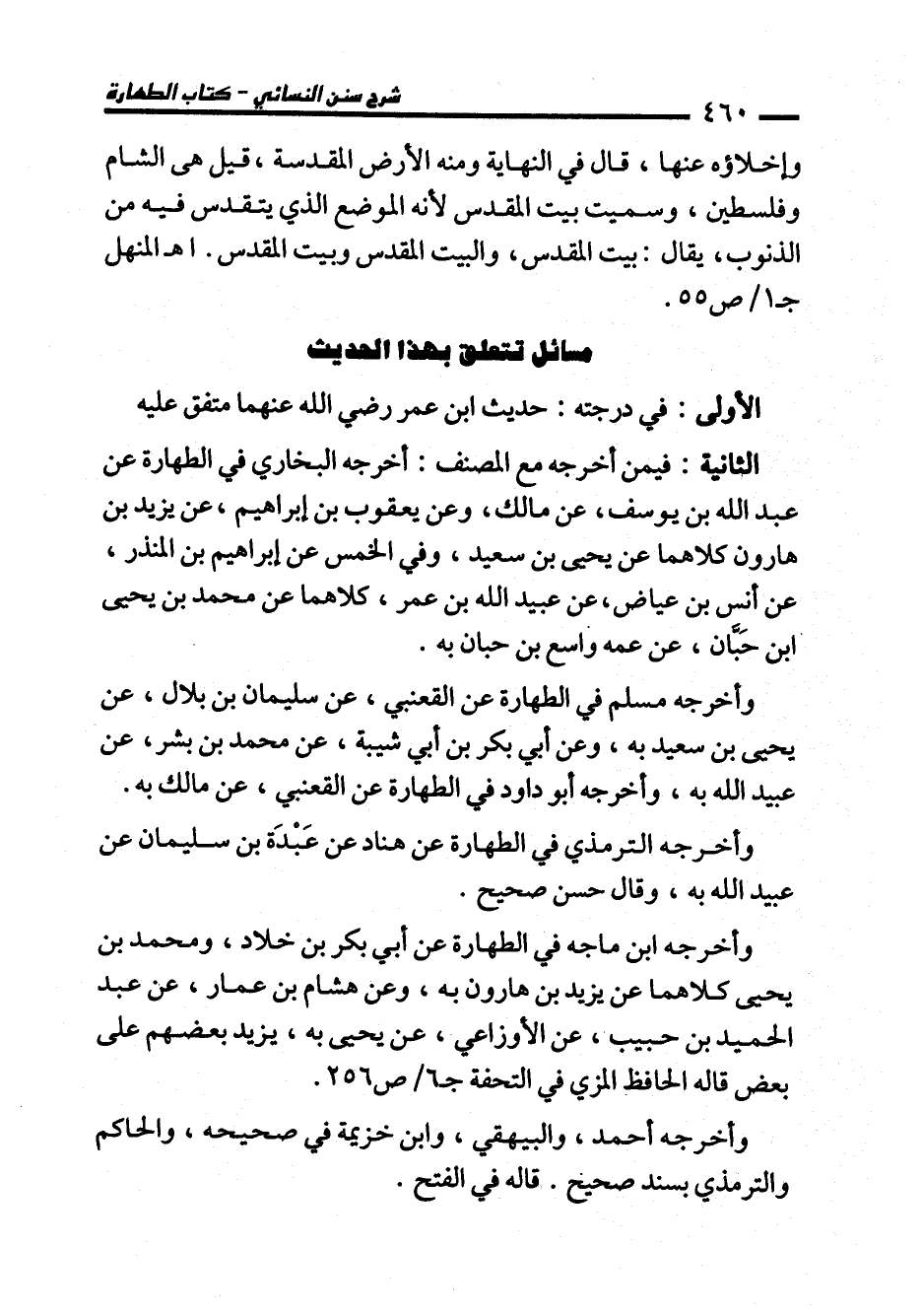وأخرجه ابن ماجه في الطهارة عن أبي بكر بن خلاد، ومحمد بن يحيى كلاهما عن يزيد بن هارون به، وعن هشام بن عمار، عن عبد الحميد بن حبيب، عن الأوزاعي، عن يحيى به، يزيد بعضهم على بعض قاله الحافظ المزي في التحفة جـ 6/ ص 256.