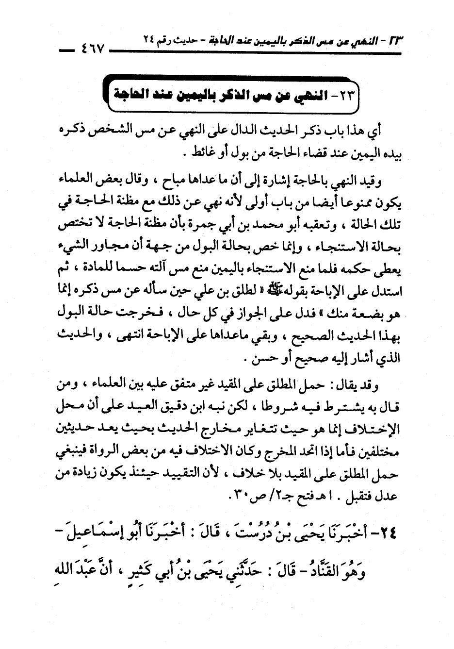 23 - النهي عن مس الذكر باليمين عند الحاجة