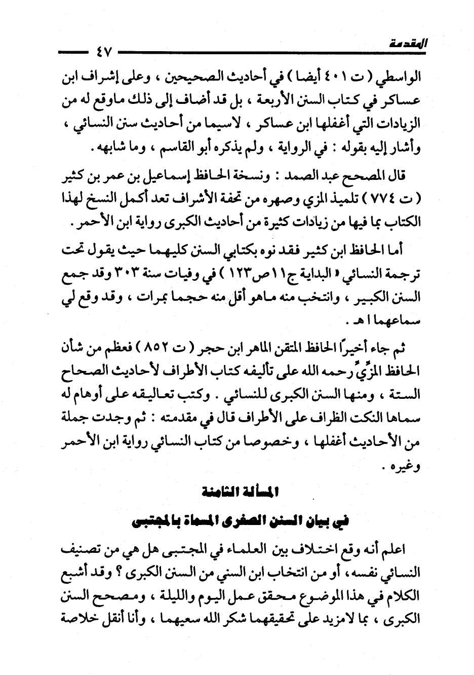 المسألة الثامنه في بيان السنن الصغرى المسماة بالمجتبى