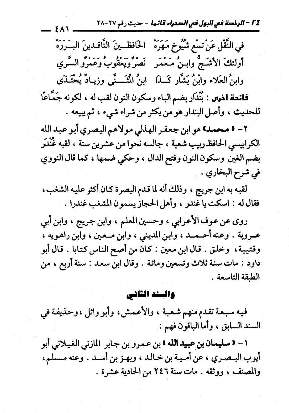 2 - "محمَّد" هو ابن جعفر الهذلي مولاهم البصري أبو عبد الله الكرابيسي الحافط ربيب شعبة، جالسه نحوا من عشرين سنة، لقبه غُنْدَر بضم الغين وسكون النون وفتح الدال، وحكي ضمها، كما قال النووي في شرح البخاري.