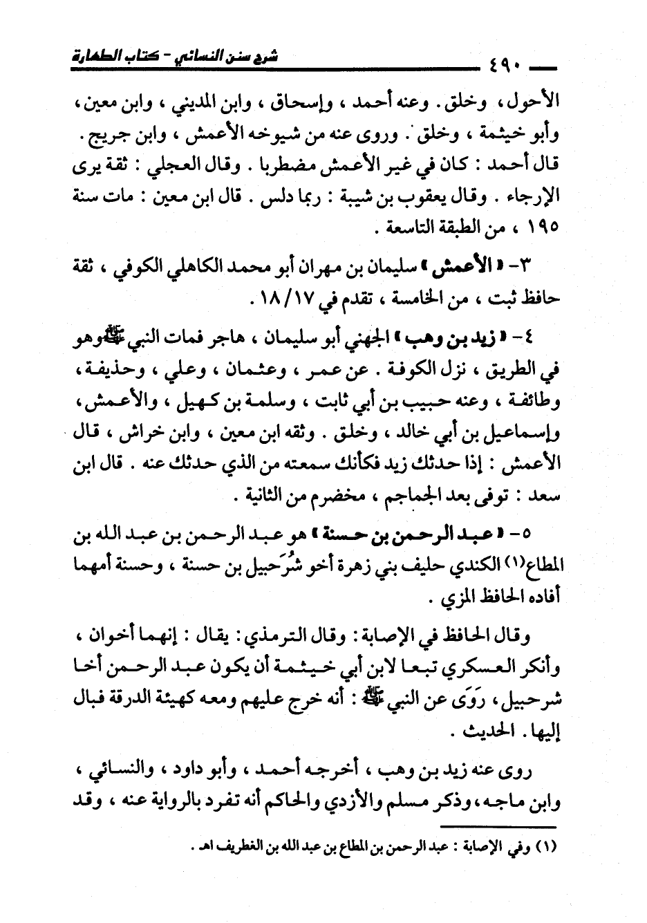 5 - "عبد الرحمن بن حسنة" هو عبد الرحمن بن عبد الله بن المطاع (¬1) الكندي حليف بني زهرة أخو شُرَحبيل بن حسنة، وحسنة أمهما أفاده الحافظ المزي.