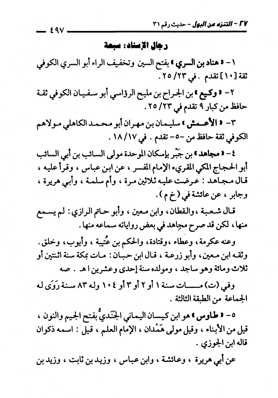 5 - "طاوس" هو ابن كيسان اليماني الجَنَديُّ بفتح الجيم والنون، قيل من الأبناء، وقيل مولى هَمْدان، الإمام العلم، قيل: اسمه ذكوان قاله ابن الجوزي.