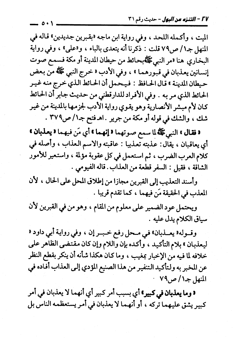 وقوله "يعذبان" في محل رفع خبر إن، وفي رواية أبي داود "ليعذبان" بلام التأكيد، وأكده بإن واللام وإن كان مقتضى الظاهر على خلافه لما فيه من الإخبار بمغيب، وما كان هكذا شأنه أن ينكر بقطع النظر عن المخبر به ولتأكيد التنفير من هذا الصنيع المؤدي إلى العذاب أفاده في المنهل جـ 1/ ص 79.