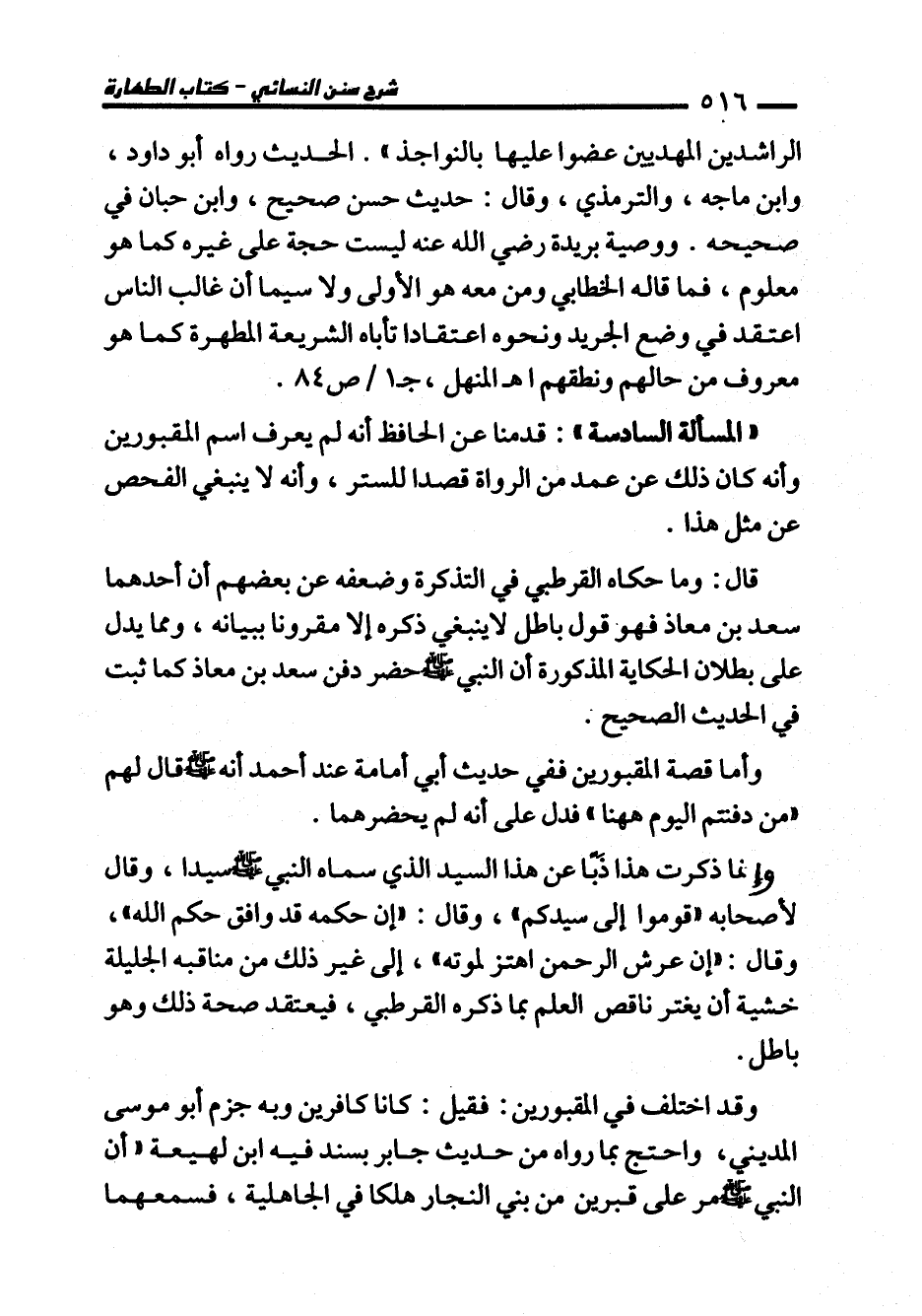 "المسألة السادسة": قدمنا عن الحافظ أنه لم يعرف اسم المقبورين وأنه كان ذلك عن عمد من الرواة قصدا للستر، وأنه لا ينبغي الفحص عن مثل هذا.