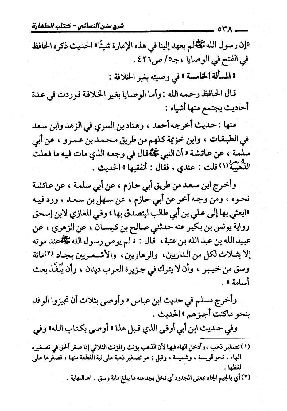 "المسألة الخامسة" في وصيته بغير الخلافة: